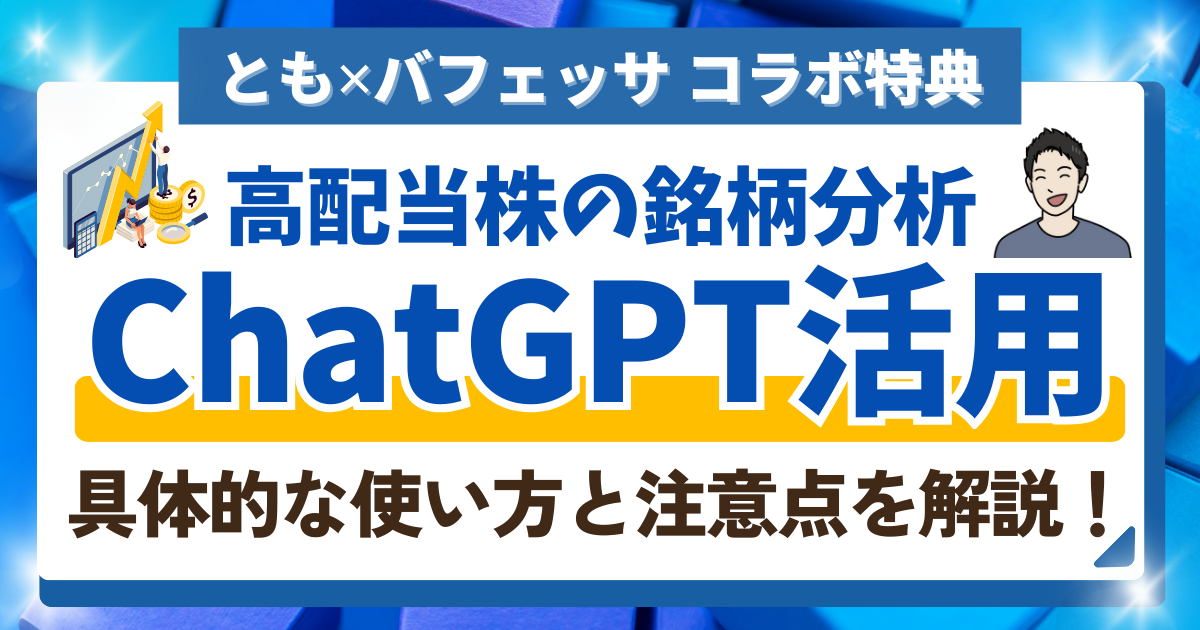 保護中: 【AIで投資が変わる?】ChatGPTを使った高配当株分析って正直どうなの?徹底解説! 2026 1/22 お金の勉強 2025年4月29日2026年1月22日 このコンテンツはパスワードで保護されています。閲覧するには以下にパスワードを入力してください。 パスワード: お金の勉強 この記事が気に入ったら フォローしてね! Follow Me 投資学習レベル別 バフェッサ祭り:夏に備える「本気の投資学習」を今すぐスタート! 【参加特典】僕の高配当株ポートフォリオをプレゼントします! この記事を書いた人 とも|20代がやるべき投資の攻略本 ✈️配当金で沖縄に行きたい26歳 ・高校生から投資を始めて1000万以上運用中 ・S&P500と国内高配当株への投資がメイン 関連記事 【2/23まで延長決定】選挙直後バフェッサ祭りの詳細と豪華特典のもらい方を解説! 2026年2月17日 【2026年1月版】一生保有したい高配当株TOP10 2026年1月21日 保護中: 【新春バフェッサ祭り特典】2026年大注目!高配当株35選プレゼント~とも注目の業種7選を解説~ 2025年12月30日 【株式投資デビュー編】3日間限定のバフェッサ祭りの詳細と豪華特典について解説! 2025年8月17日 【2026年最新版】アメックスゴールドプリファードは損?年会費39,600円が実質無料になるカラクリを完全ガイド! 2025年8月16日 CMで話題のGFSって何?投資の学校GFSを徹底解説!初心者でも安心の無料体験「バフェッサ」から始めよう 2025年5月22日 保護中: 【参加特典】僕の高配当株ポートフォリオをプレゼントします! 2025年5月18日 投資学習レベル別 バフェッサ祭り:夏に備える「本気の投資学習」を今すぐスタート! 2025年4月28日