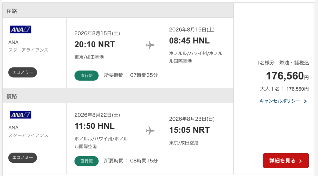 ハワイ往復は12万〜17万円かかるからこの特典はすごいよね!